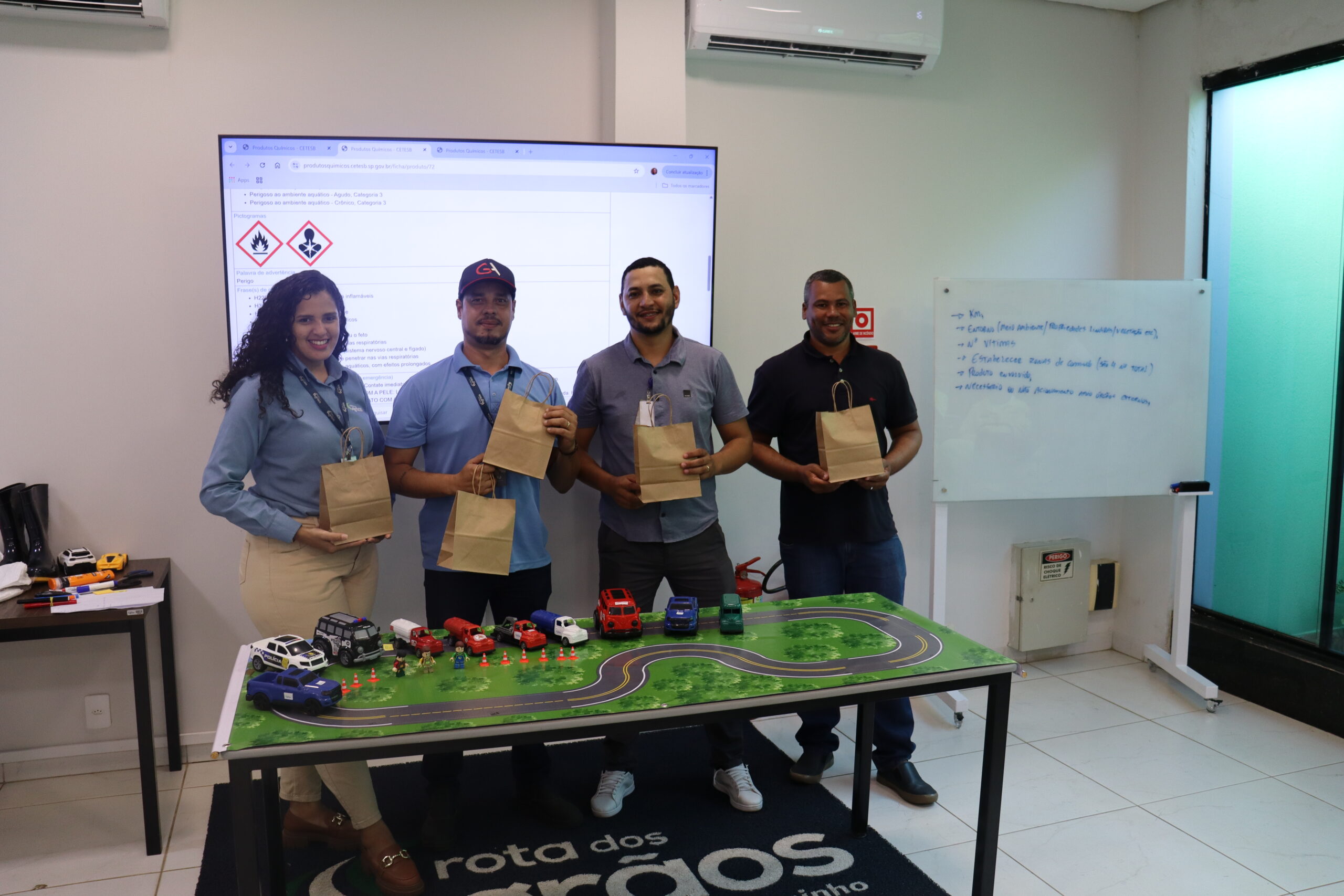 Entre os dias 24 e 26 de novembro, a Rota dos Grãos promoveu um ciclo de capacitação com foco no Programa de Gerenciamento de Riscos (PGR) e no Plano de Atendimento à Emergência (PAE), incluindo a realização de um simulado de emergência envolvendo produtos perigosos, na unidade BSO/SAU – Km 195+190.